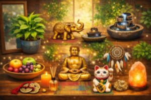Nota importante: tradizioni come Feng Shui, monete cinesi o specifiche direzioni hanno valore culturale e simbolico. L’evidenza scientifica riguarda soprattutto luce, ordine, natura, suoni e profumi. Se un rito non ha dati a supporto, dichiaralo e usalo solo come promemoria personale.